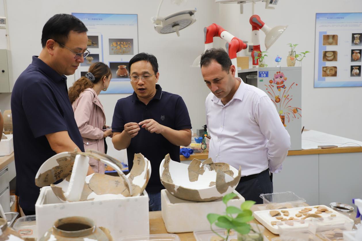 2025年9月19日至21日,中吉乌三国学员在广州参观了广东省博物馆、南汉二陵博物馆、南越王博物院,系统学习了岭南地区从秦汉至唐宋时期的考古成果与文物保护以及海上丝绸之路陶瓷器、金属器等文物的保护修复技术与方法。在广州市文物考古研究院(南汉二陵博物馆)院长、研究员张强禄向学员们赠书,副院长吕良波系统介绍了广州市在文物保护修复方面、科技应用与考古研究等方面的工作成果。学员们还实地调研了广州市文物考古研究院(南汉二陵博物馆)文物修复实验室,并针对不同气候条件下的文物保护技术开展了深入交流。