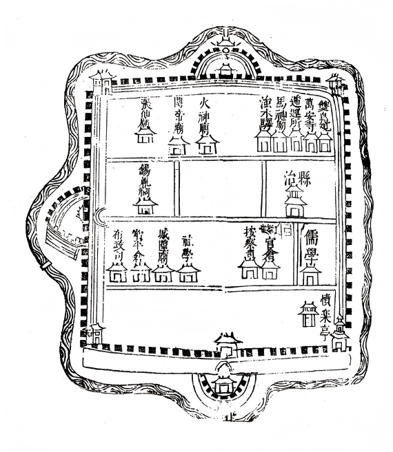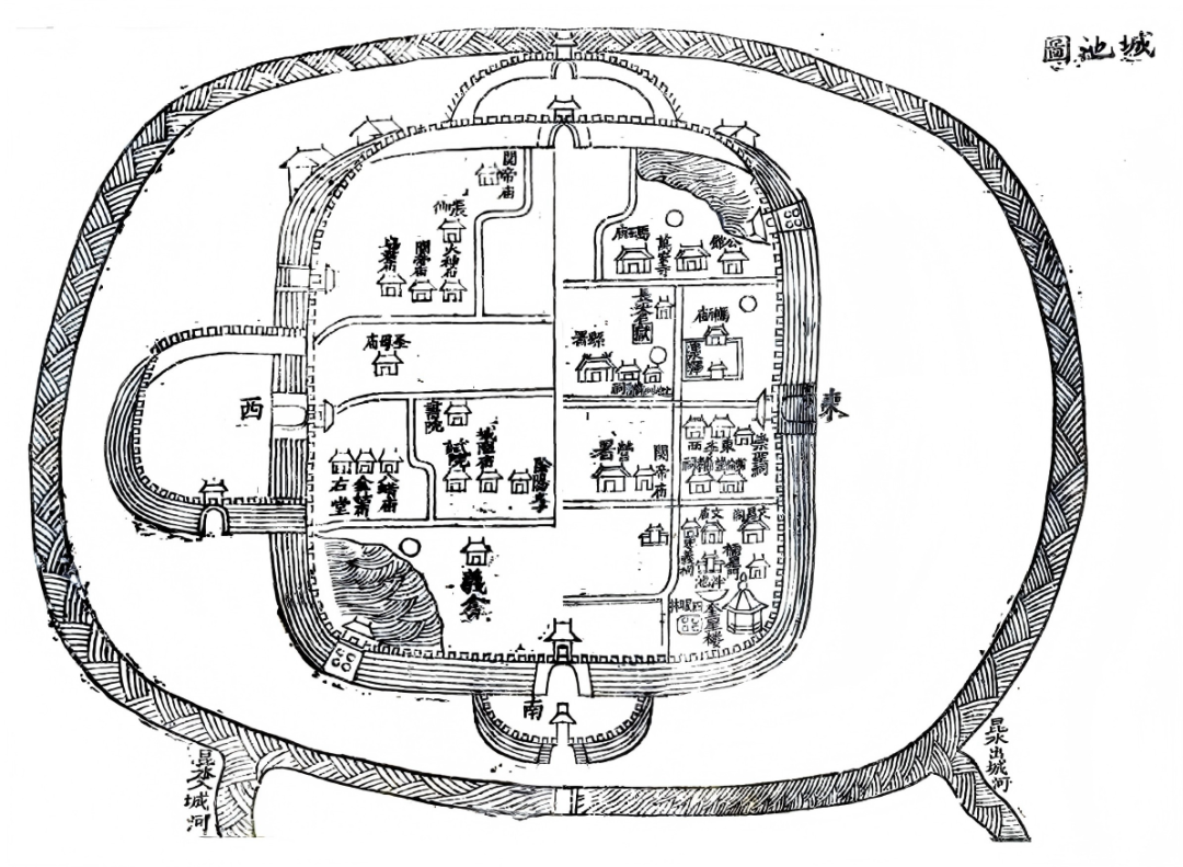 昆阳古城布局图 (明)嘉靖 叶县治图(该图采用上为南的传统绘法,与另几幅图不同)